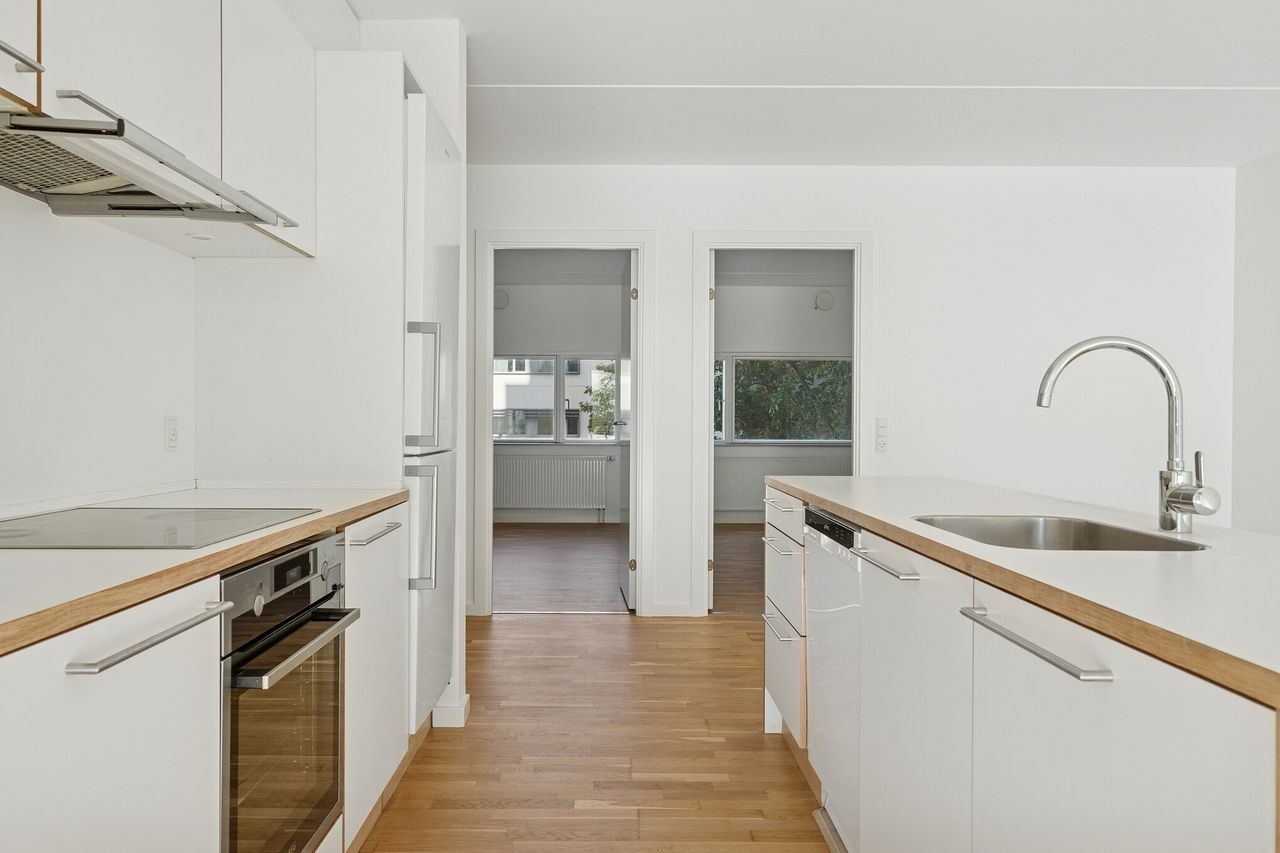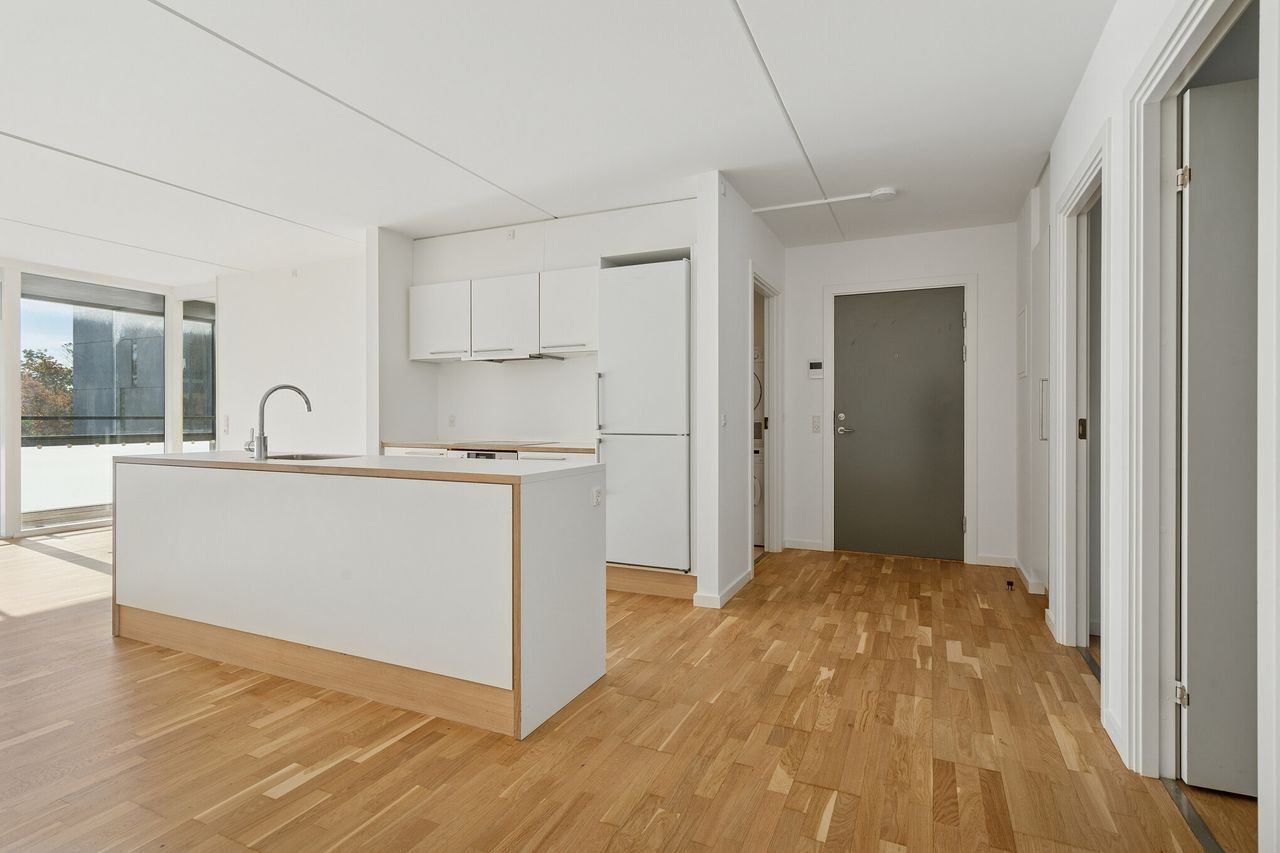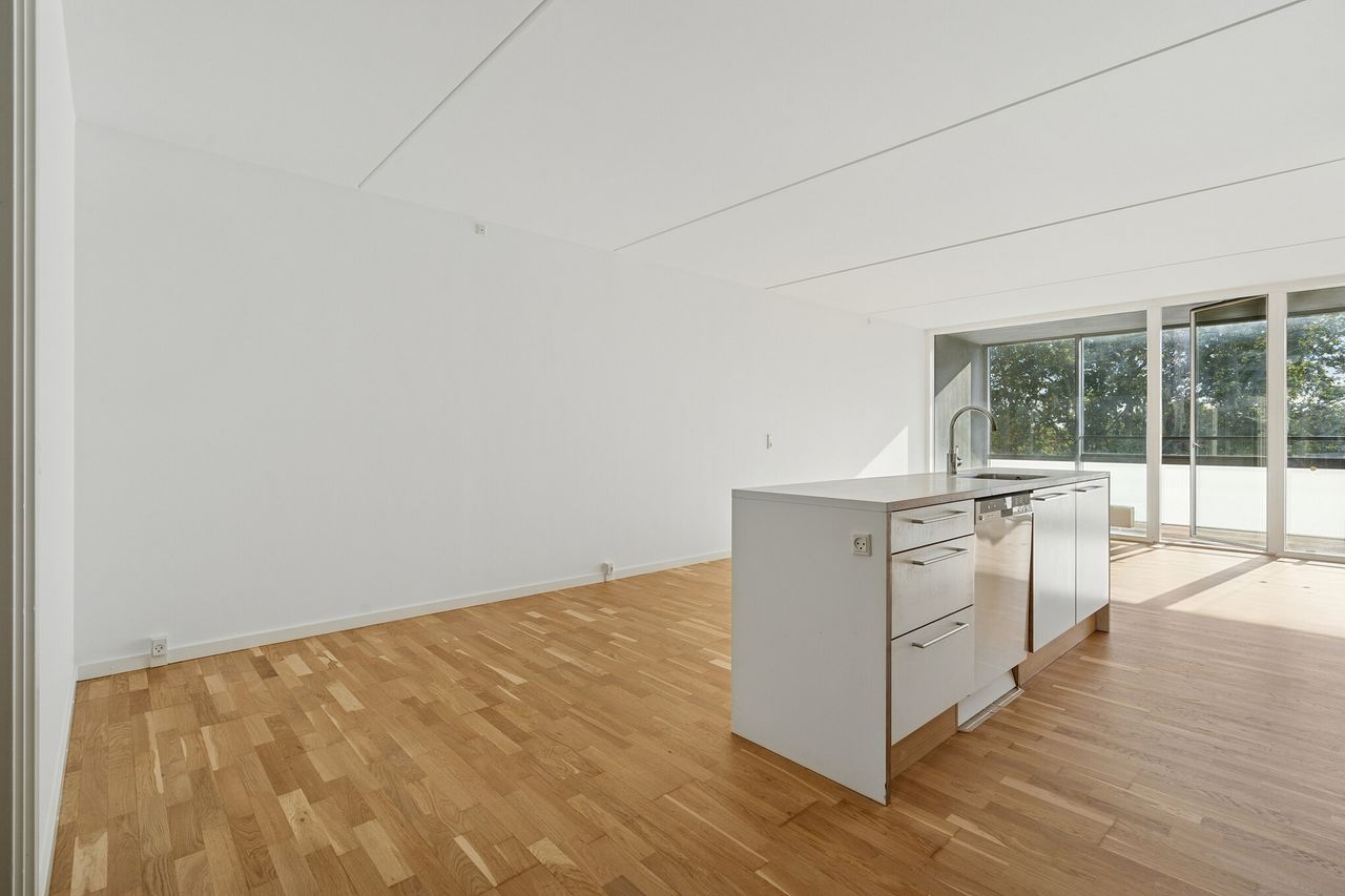 Lejligheden er på 103 m2 med ca. 14 m2 skøn altan og har en god planløsning og grøn udsigt. Lejligheden indeholder: Entre, stor opholdsstue med åbent køkken. I forlængelse af opholdsstuen er der værelse/ekstra stue, adskilt fra opholdsstuen med skydedør. Der er glasparti fra gulv til loft og 2 udgange til den store sydvendte altan. Altanen er delvist lukket med skydevinduer. Derudover er der 2 gode store værelser samt pænt badeværelse med vaskesøjle. Nybehandlede parketgulve. Der er elevator i ejendommen. Mulighed for kabel-TV via YouSee.